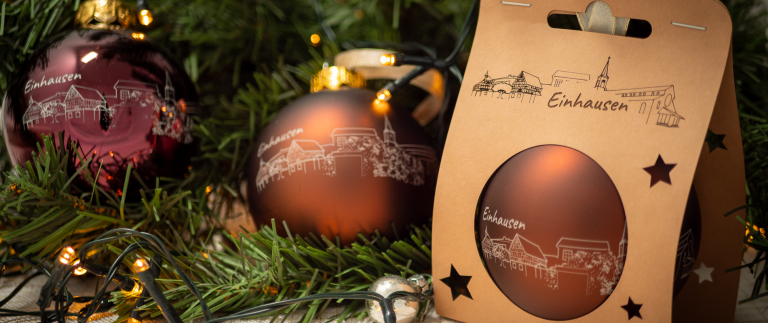 Die schönste Zeit des Jahres steht vor der Tür – und was könnte besser dazu passen als ein ganz besonderes Highlight für Ihren Weihnachtsbaum? In diesem Jahr präsentieren wir stolz unsere limitierten Weihnachtskugeln mit einem exklusiven Einhausen-Motiv, die mit viel Liebe und Präzision lasergraviert wurden. Aber das ist noch nicht alles: Für alle, die auf der Suche nach einem wirklich einzigartigen Geschenk sind, bieten wir auch personalisierte Weihnachtskugeln an, die nach Ihren Wünschen graviert werden.